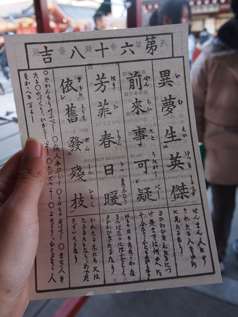 こちらのは銀色のおみくじ箱を振って出てきた棒に書いてある数字と
