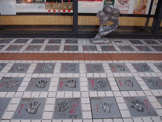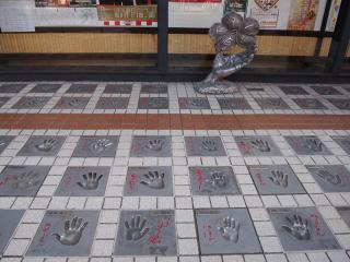 別な道を通りつつ戻ったら大量の有名人の手形発見!