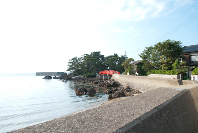 走っている途中になにやら赤い橋を発見。sado-1-50.jpg