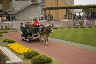ミヤビ号が牽く馬車を見つつ競馬場を後にしました。