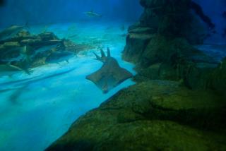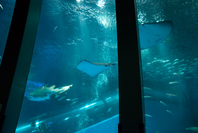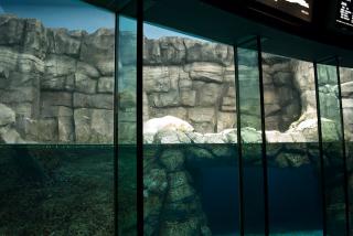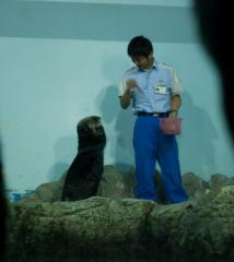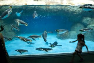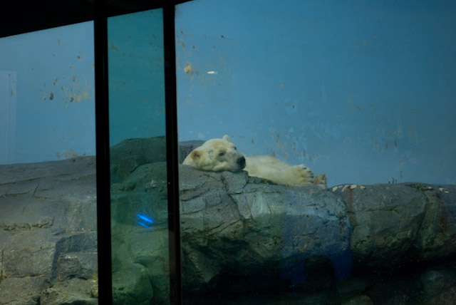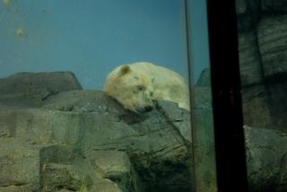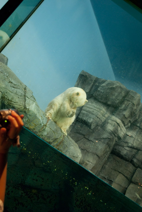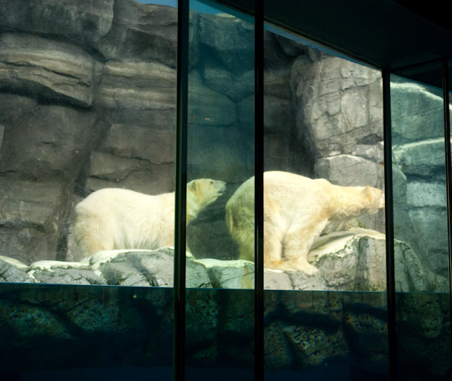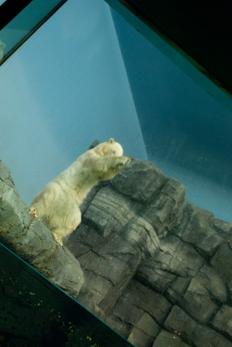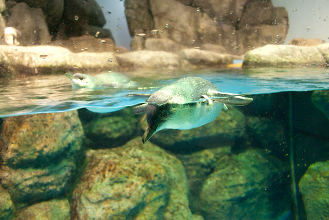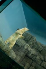 ナイスキャッチ白熊を堪能しながら進むと激しく泳ぐペンギンたち